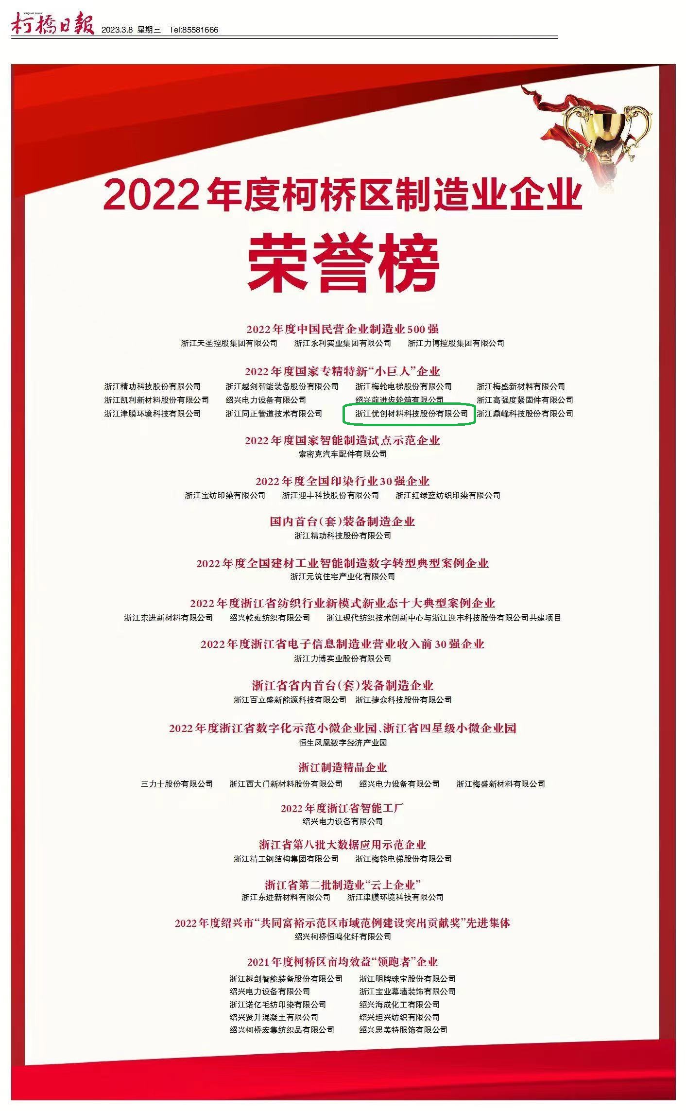 • 喜訊!浙江優創材料榮獲2022國家級專精特新“小...